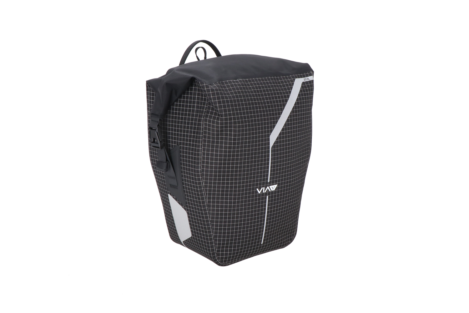 Seitentasche mit Rolltop-Verschluss bietet dir 20 Liter Stauraum.